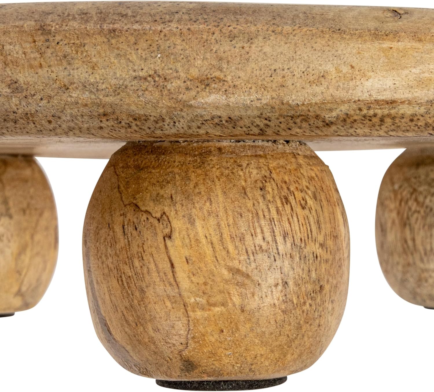 - This 9.75 inches round mango wood pedestal has a natural beauty and charming design adding a touch of rustic elegance to any table setting